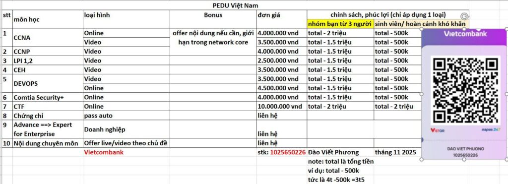 Anh em quan tâm đến lĩnh vực Network, Security, Linux hoặc mong muốn theo đuổi nghề bảo mật thực chiến có thể liên hệ trực tiếp giảng viên Phương Đào Viết để được tư vấn và nhận hỗ trợ học phí